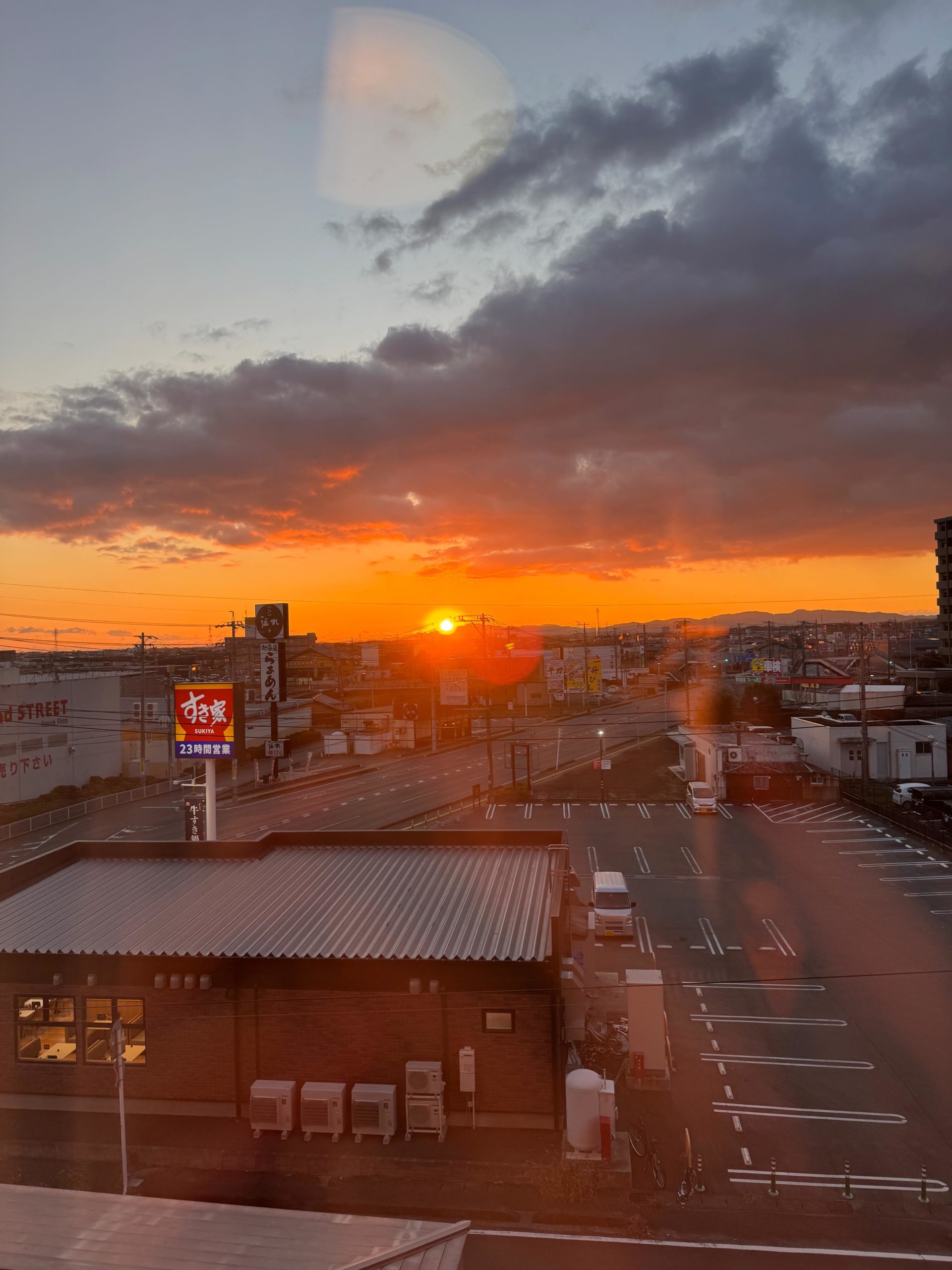 60kmウォーキングの翌朝、目が覚めると窓の外には素晴らしい朝焼けが! 昨日のリタイアの悔しさはまだ少し残っているけれど、今日はお正月。