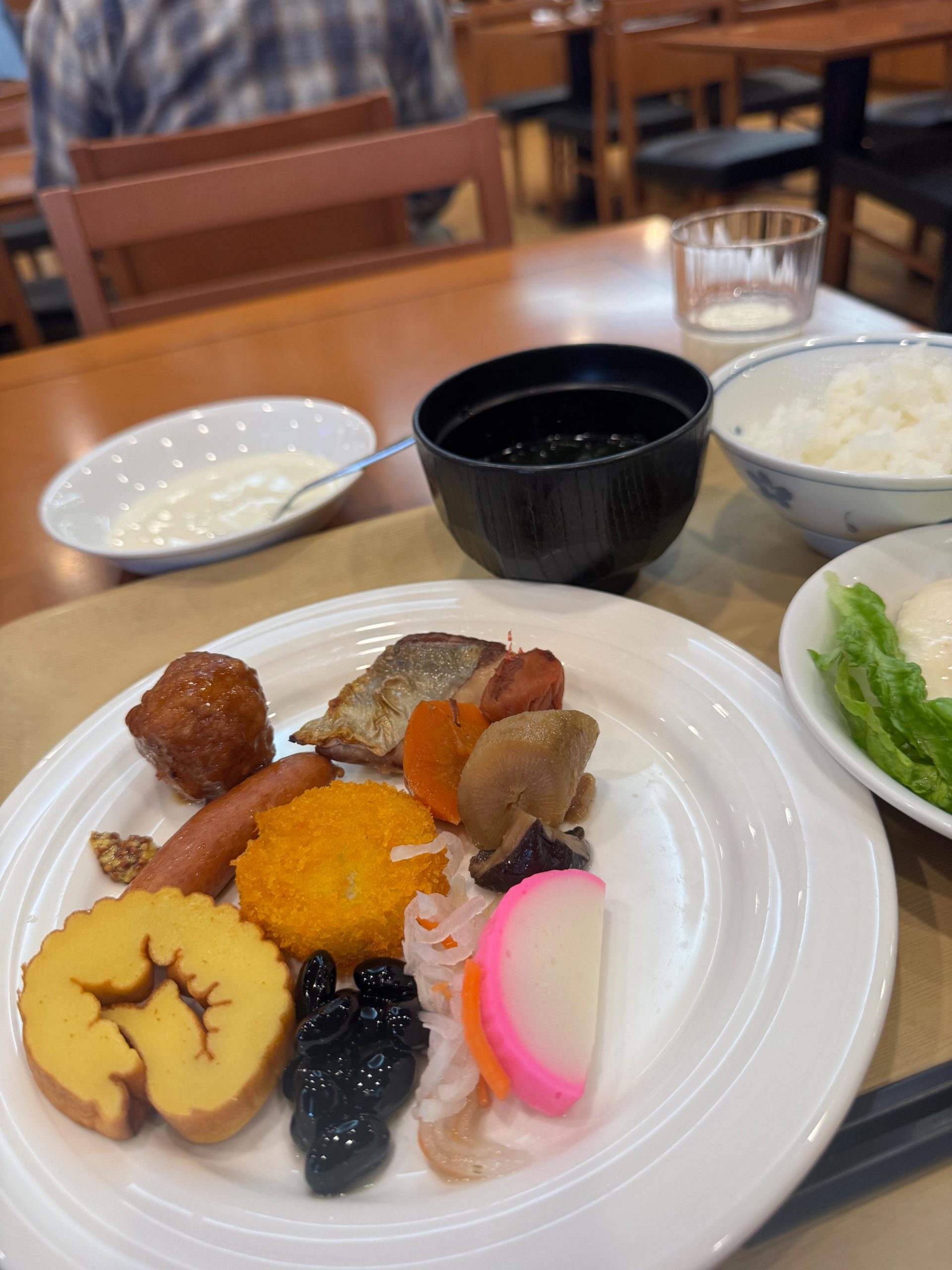 宿泊したルートインの朝食には、伊達巻きや黒豆などお正月メニューがズラリ。こういう細やかな心遣い、朝からほっこり元気をもらえます。
