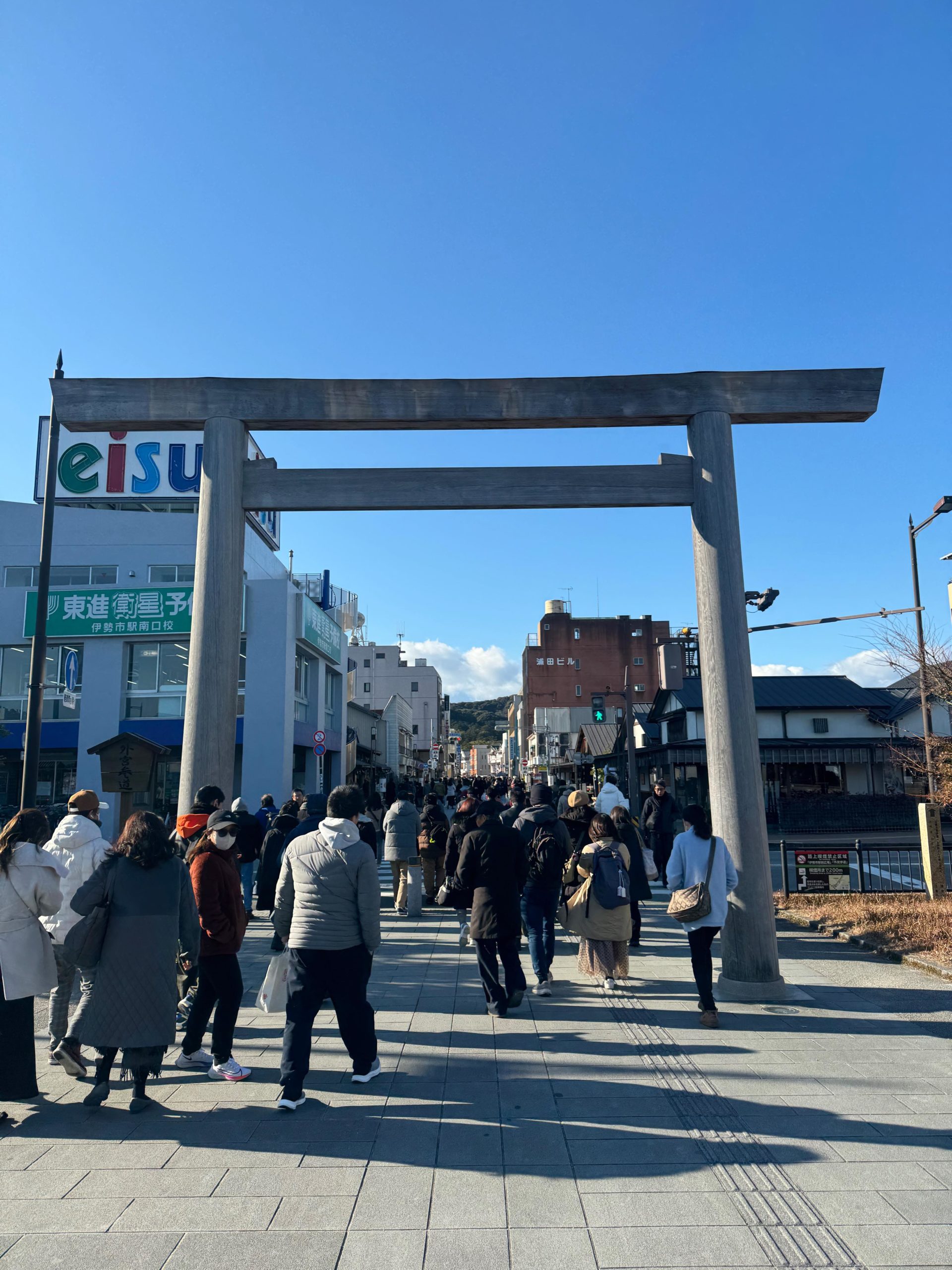 外宮参道をテンション高めで歩いていきます。2日でもかなりの人出!元旦はきっと、もっと凄まじい熱気だったんだろうなぁ。