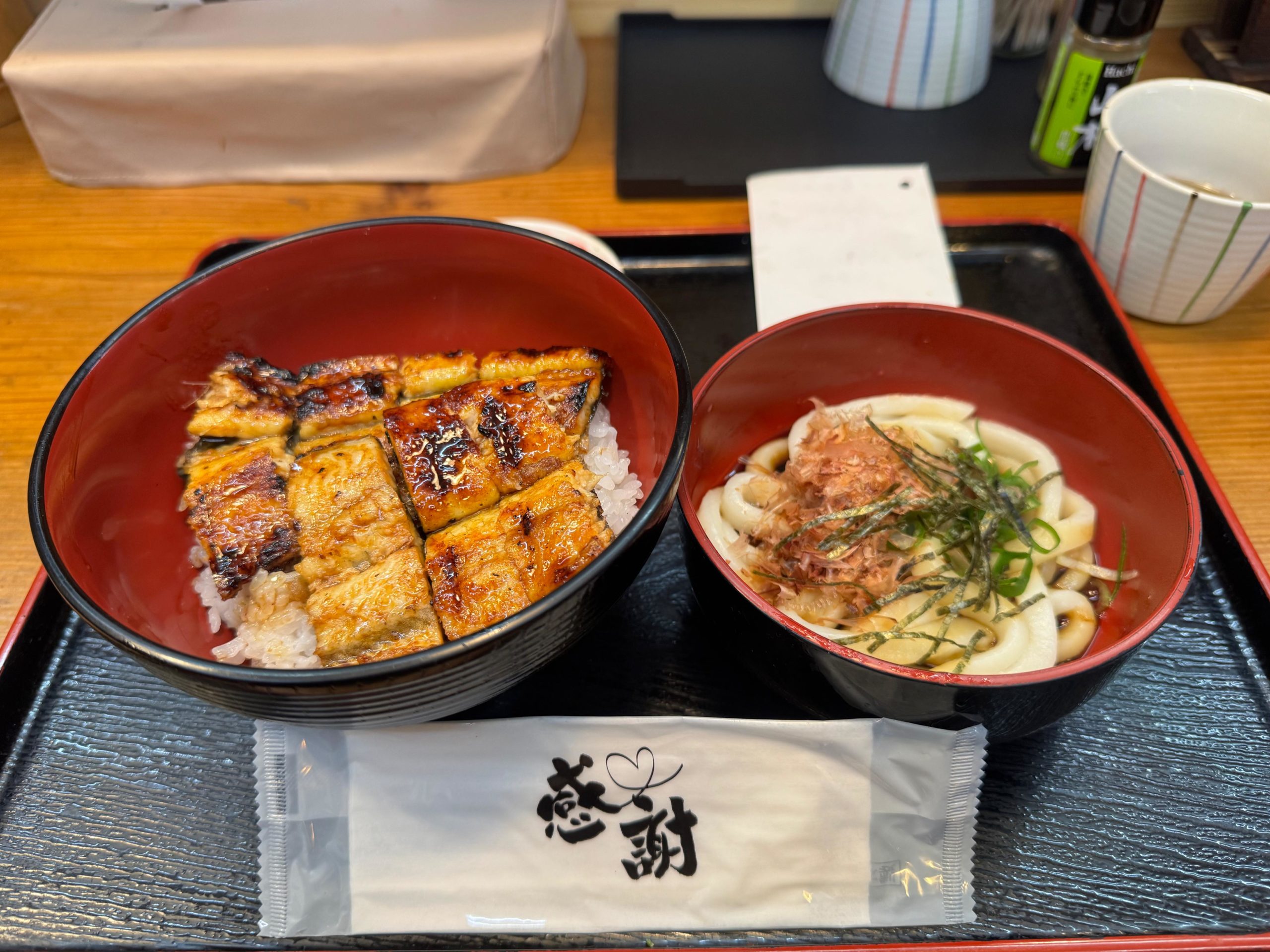 皮はパリッと香ばしく、中はふっくら。甘辛いタレが染みたうなぎは最高!これにふわふわの伊勢うどんまで付いてくるなんて、まさに「ご褒美ランチ」です。