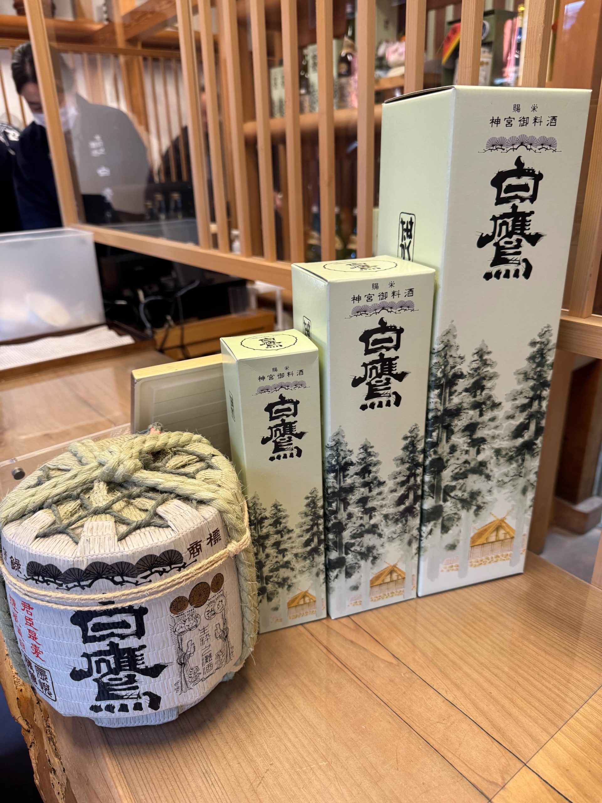 まずは「白鷹(はくたか)」へ。伊勢神宮の御神酒(おみき)として唯一献上されている伝統あるお酒です。特別限定酒を購入しました!