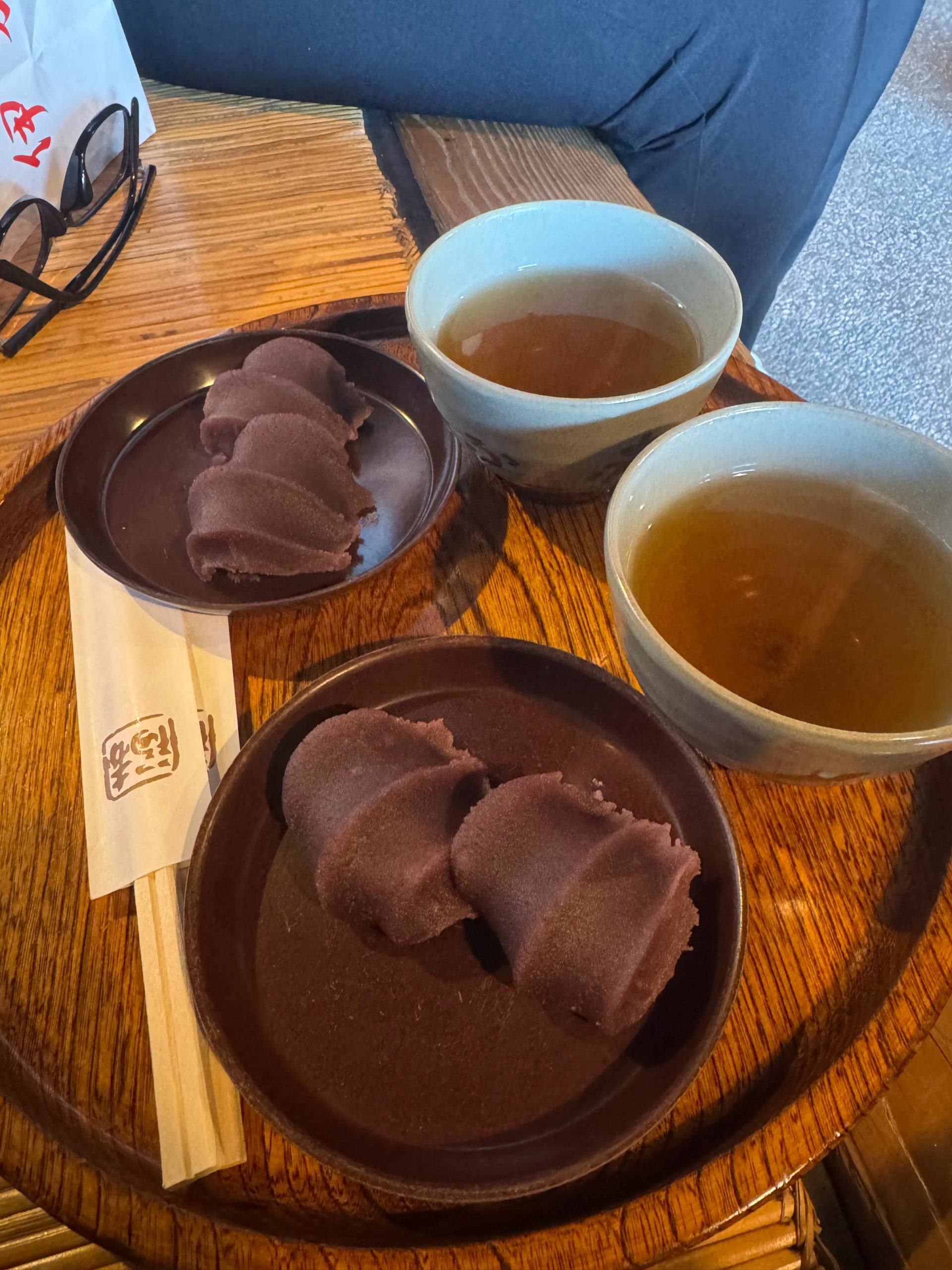そして、やっぱり外せないのが赤福本店。 ここでいただく「盆」は、番茶の香りと出来立ての赤福餅がセットになった至福の一皿。やわらかいお餅と上品なこしあんがたまらない!