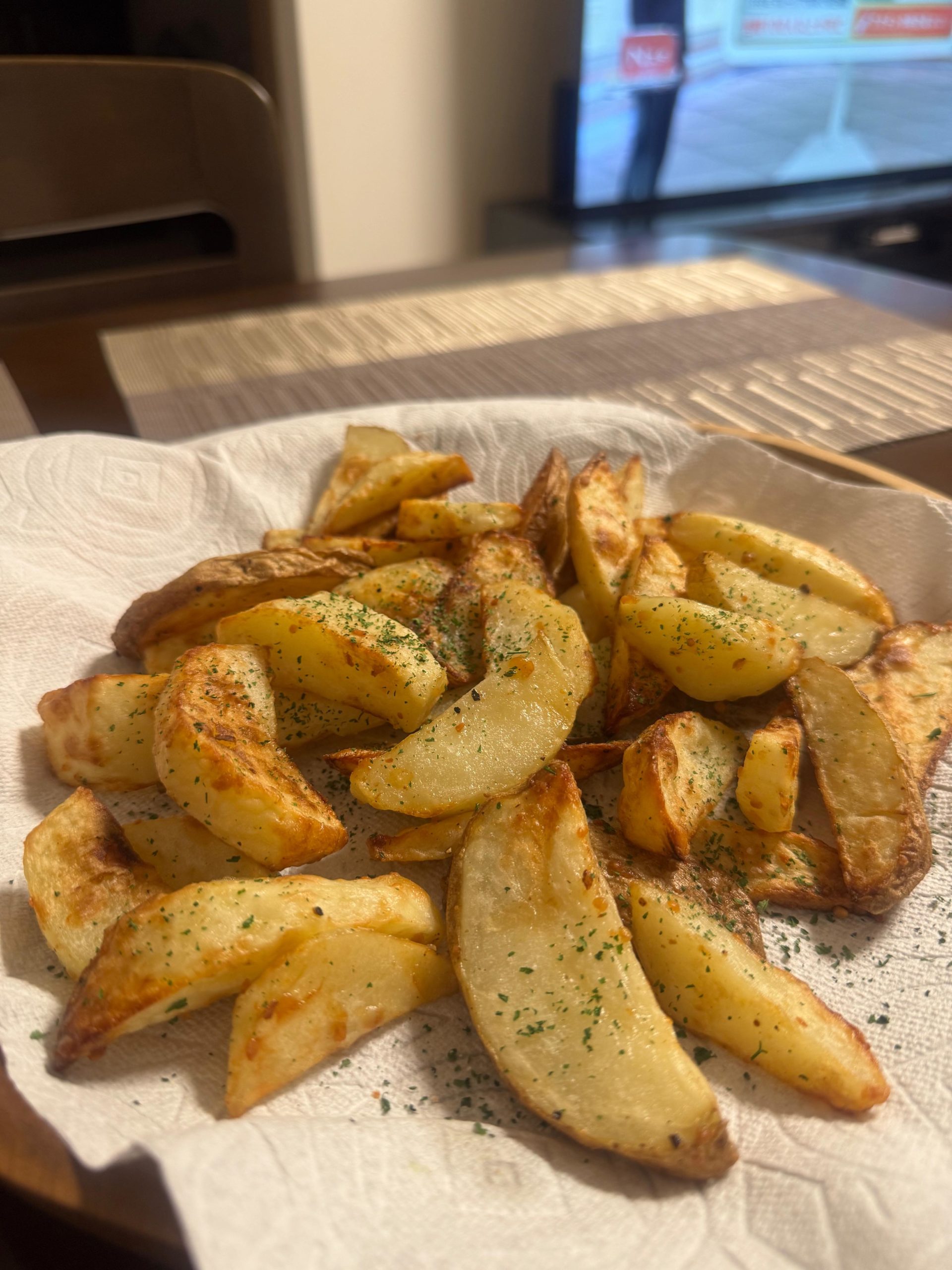 皮ごと切って、少量の油をまとわせて焼くだけ。外はカリッ、中はホクホクの対比がたまりません。焼けたらトレイの中で塩&こしょうをシャカシャカ振るのが我が家流。