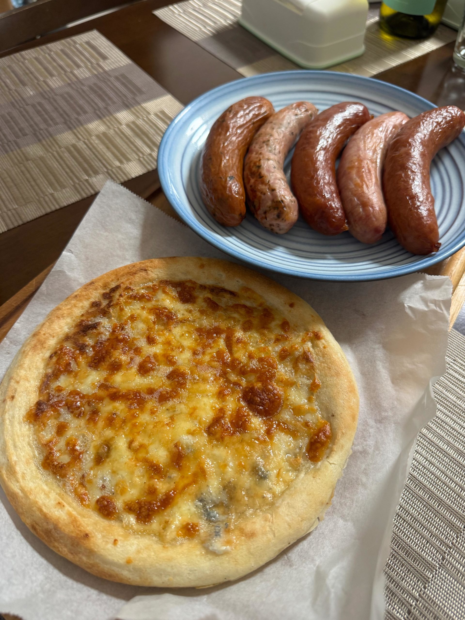 ピザは底までムラなくサクサク。石釜で焼いたような黄金色の焦げ目がついたチーズは感動ものです。ソーセージも皮が弾けて肉汁があふれ出し、最高のご馳走になります。